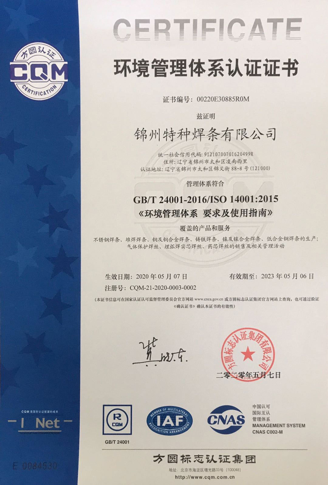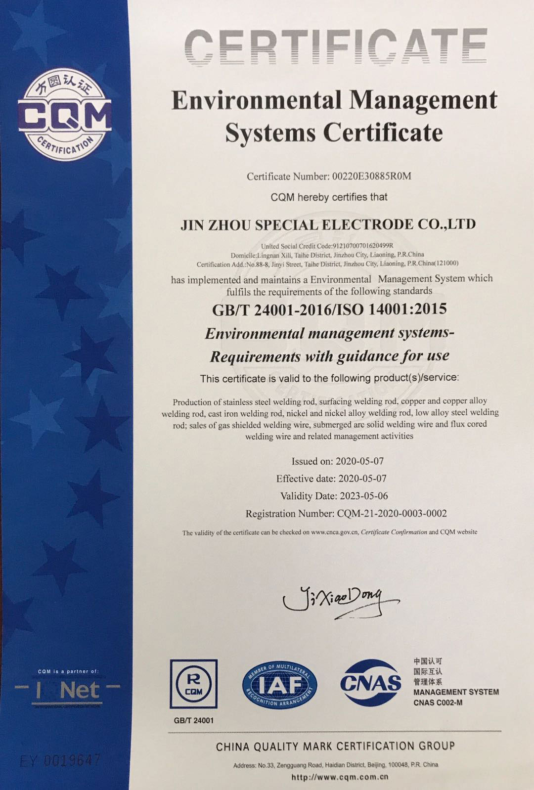 認證類別:GB/T 24001-2016/ISO 14001:2015 Environmental management systems-Requirements with guidance for use