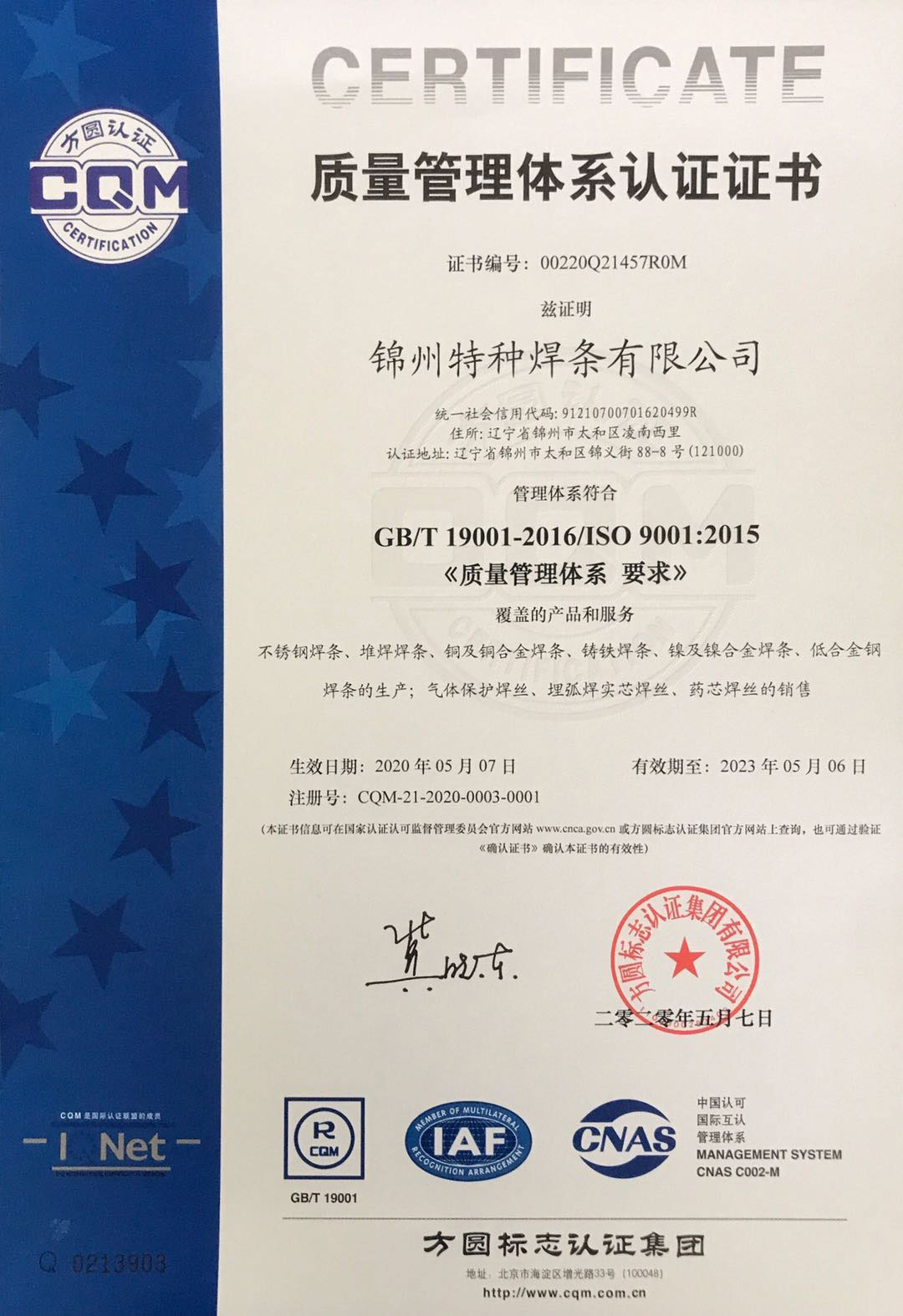 認證類別:GB/T 19001-2016/ISO 9001:2015 Quality management systems---Requirements